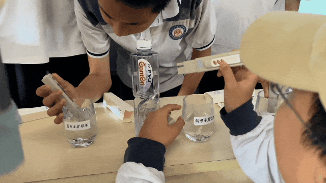 科普講座后,“TDS 飲用水質(zhì)檢測(cè)”將理論知識(shí)轉(zhuǎn)化為有趣的實(shí)踐。實(shí)驗(yàn)臺(tái)上,純凈水、自來(lái)水、礦泉水等多種水樣整齊擺放,幾位學(xué)生爭(zhēng)相上臺(tái)參與實(shí)驗(yàn),在親手操作中感受科學(xué)的魅力。