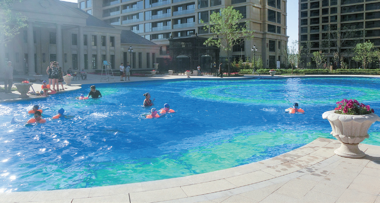 泳池設(shè)備,水質(zhì)清澈見底,深受小區(qū)居民喜愛。